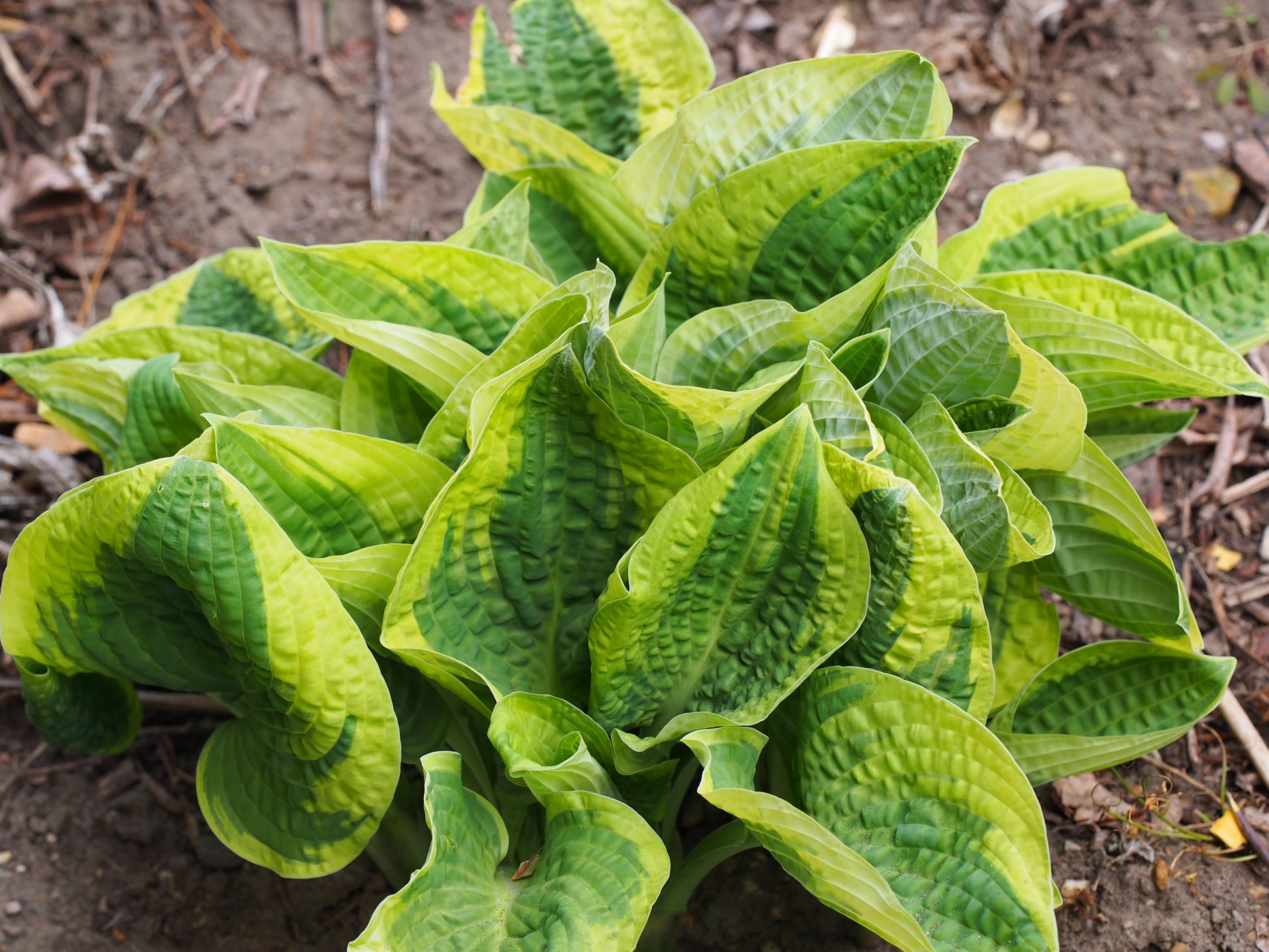 Large, highly textured leaves in emerald green with pale yellow margins make this a hosta with unique visual interest.